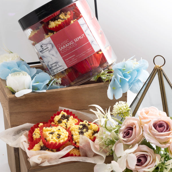 Step back into childhood with our Classic Sarang Semut Cookies. Each of the 30 pieces in this jar is carefully grated to create its signature nest-like texture, featuring a rich, milky base infused with aromatic custard. Finished with a sprinkle of "chocolate ants" (chocolate rice) and nestled in festive red paper liners, these cookies are as charming as they are delicious.